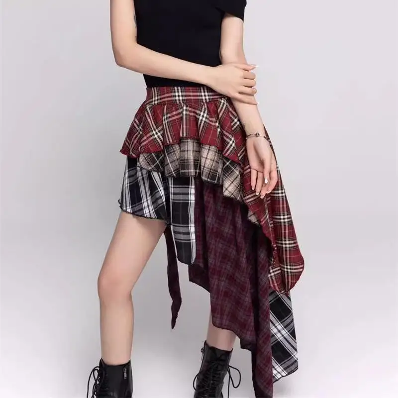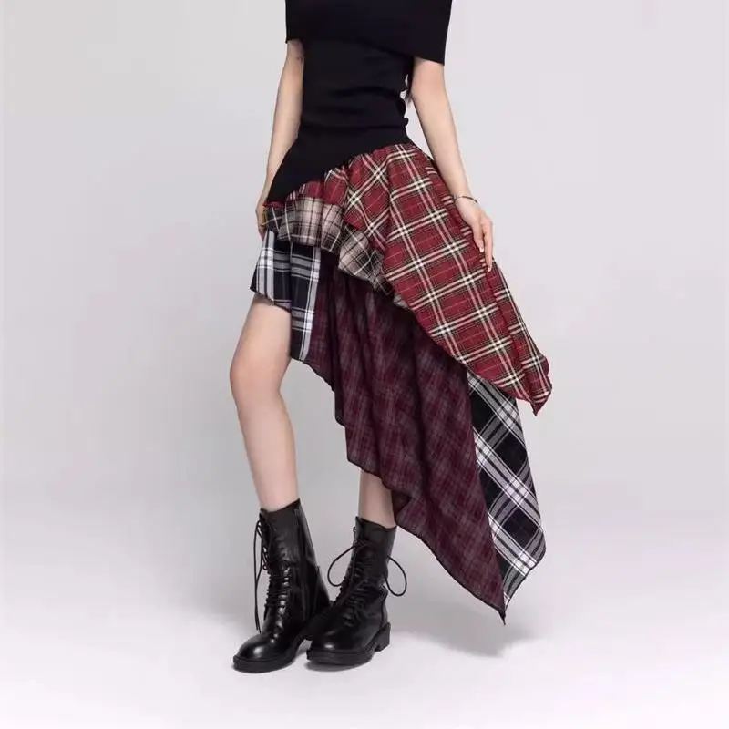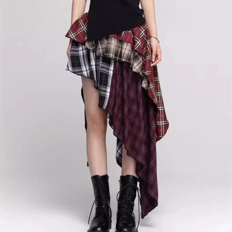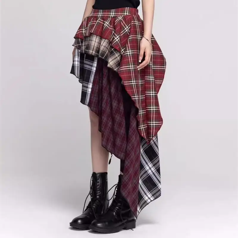 Cheap And Discount Retro Hot Girl Plaid New Irregular Slim and Versatile Temperament Mid-length Skirt Wholesale. Buy Directly From Bertels Store.