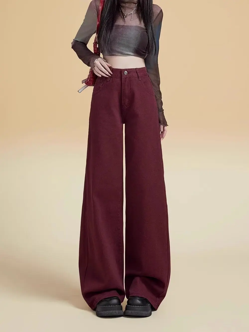 Cheap And Discount Women's Street Style Wide Leg Red Jeans American Vintage Casual Denim Trousers Female High Waist Loose Straight Pants Wholesale. Buy Directly From Cool Girls Clothing Store Store.