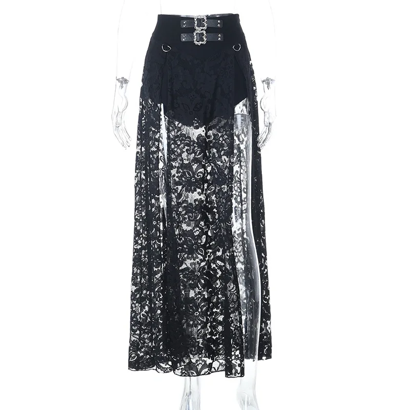 Cheap And Discount Dark Vintage Lace Double Slit Skirts 2025 New Gothic Style Subculture Punk Sexy Mini Skirt Black Fashion Patchwork Clothes 2000s Wholesale. Buy Directly From Shop1104914749 Store.